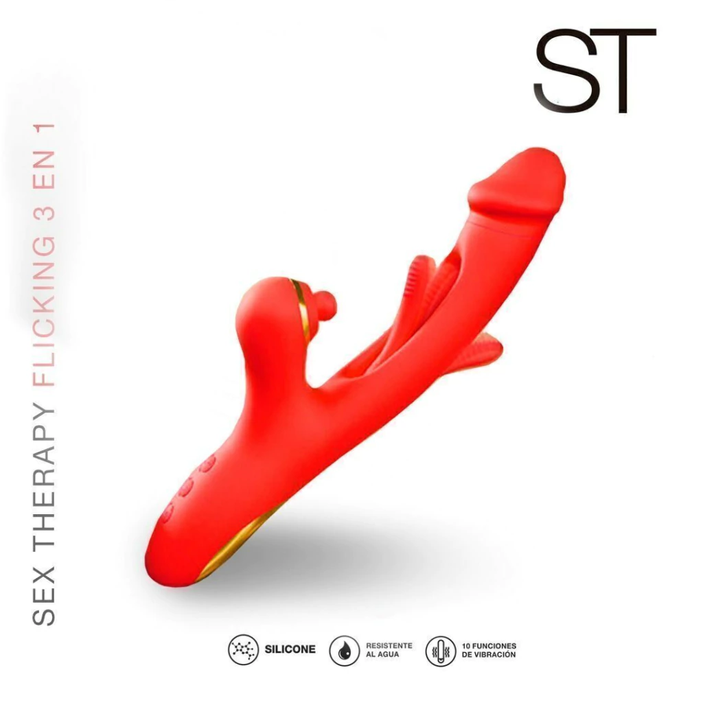Volvete loca de placer! Este nuevo vibrador de silicona Flicking te brinda sensaciones intensas para quienes desean liberar su tensión hasta que estén eyaculando y húmedos. El eje de silicona suave está hecho de silicona de primera calidad y es seguro para el cuerpo y libre de ftalatos. Al insertar apunta al punto G, sentirás vibraciones poderosas a través del eje. Y cuando introduzcas el resto del eje, tendrás la estimulación adicional del brazo que se mueve en el propio eje. Golpea contra tu punto G a medida que la cabeza se acerca más a tu cuello uterino para una liberación cervical y del punto G. Al mismo tiempo, puedes disfrutar de los brazos del conejo golpeando contra tu sensible perla. Este potente y sensual juguete es completamente recargable a través del cable USB provisto. Para limpiar, usa agua tibia y jabón suave, luego enjuaga y rocía con un limpiador de juguetes.